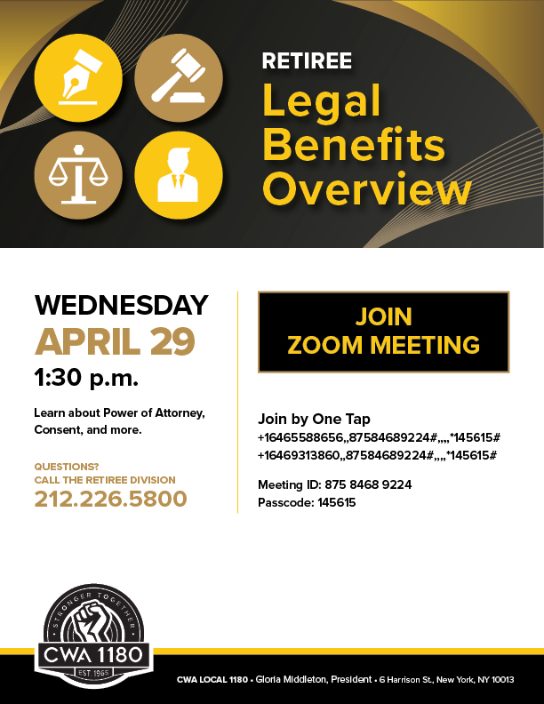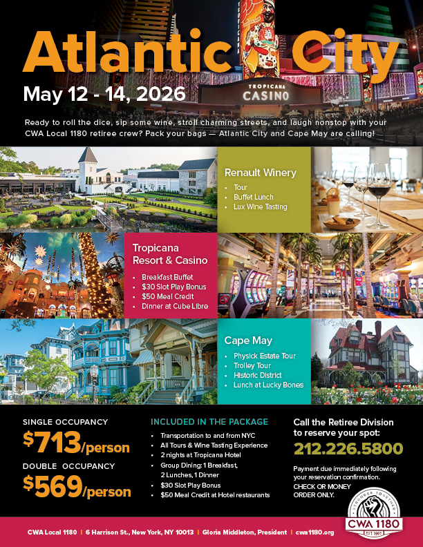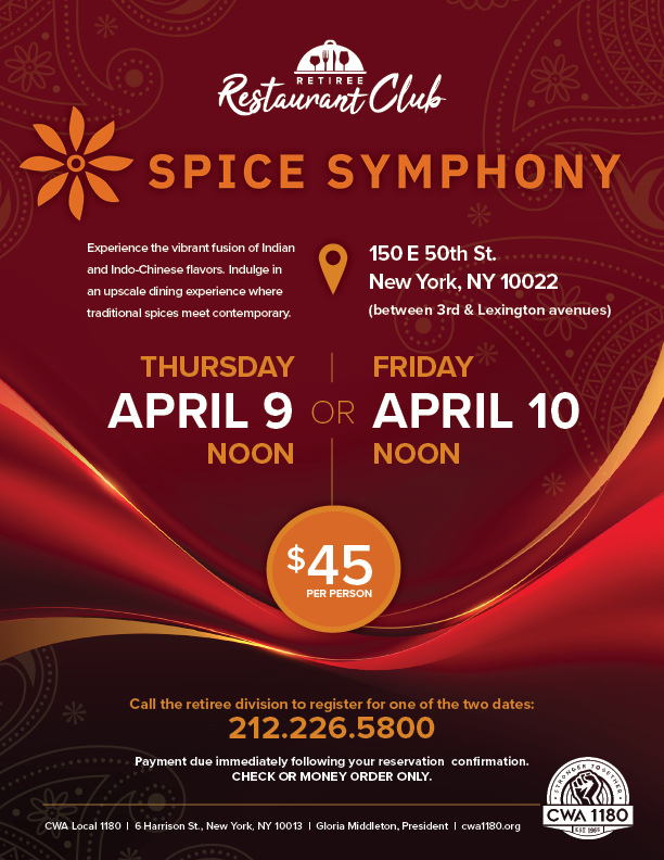 Call the Retiree Division to reserve your spot today: 212.226.5800